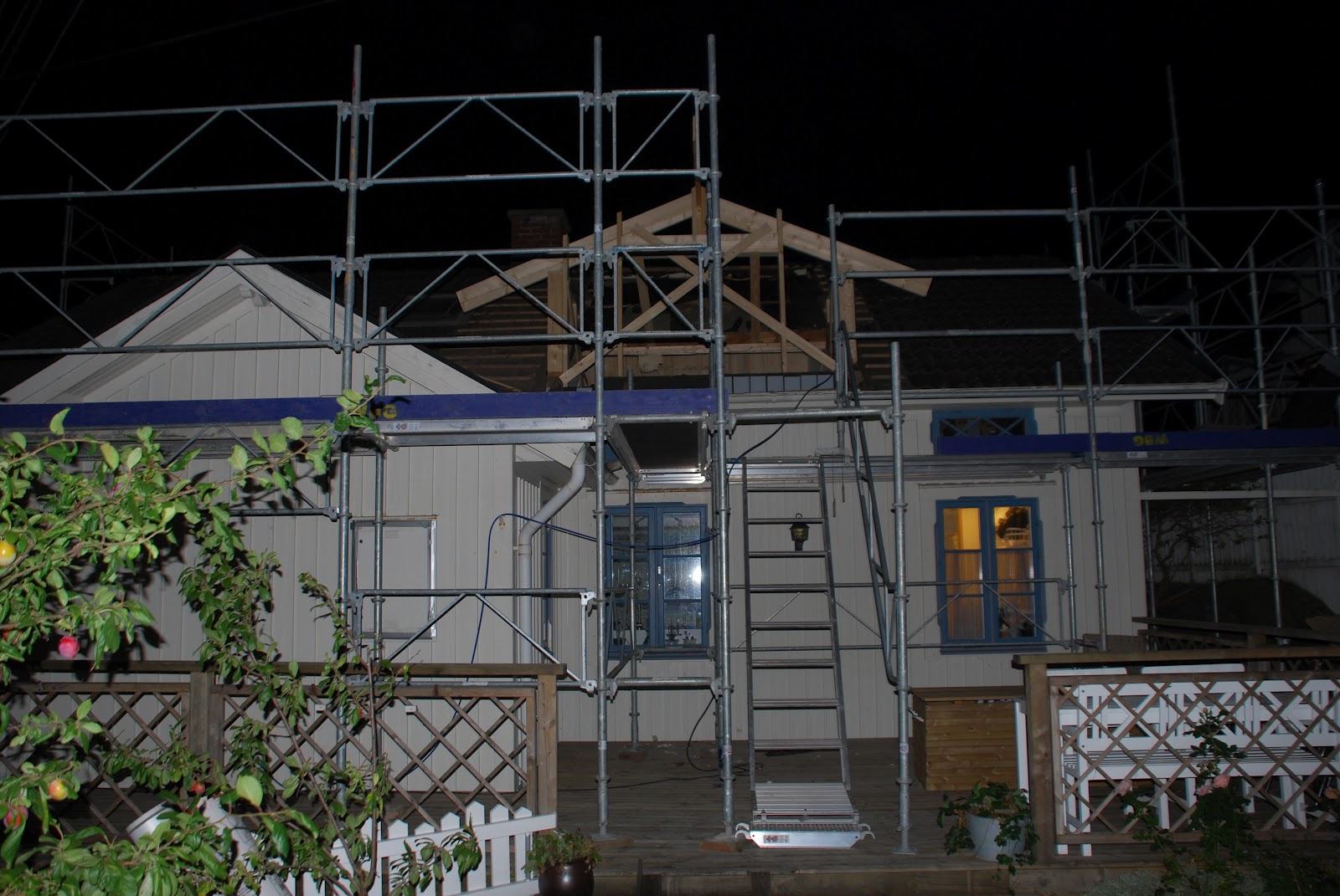 Idag har det sågats hål i vårt tak och det är inte utan att det är lite kyligt på övervåningen. Tur att det inte är svensk sommar längre för då hade det regnat in ordentligt.